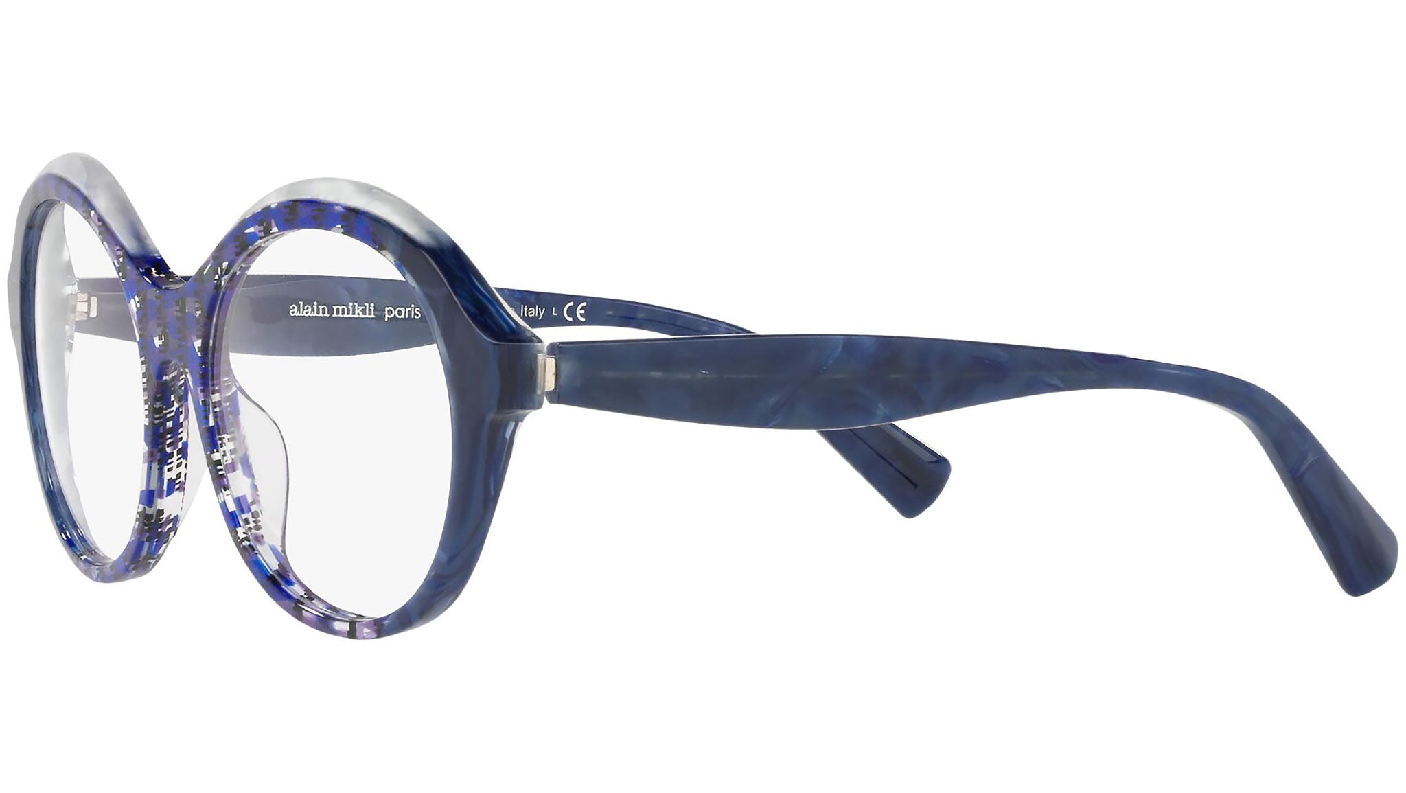 Occhiali da vista Alain Mikli modello A03118 variante colore blu fishnet / bianco e blu, codice colore 001. Alain Mikli è stato il primo marchio a sostenere l’idea di occhiale come accessorio. Dalla fusione di arte e moda nascono montature da sempre sinonimo di unicità e provocazione, contraddistinte per il design originale e le combinazioni di colori esclusive.