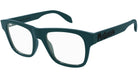 Occhiali da vista Alexander McQueen linea Casual Lines modello AM0389O variante colore 003 verde scuro tinta unita lucido con astine color verde.