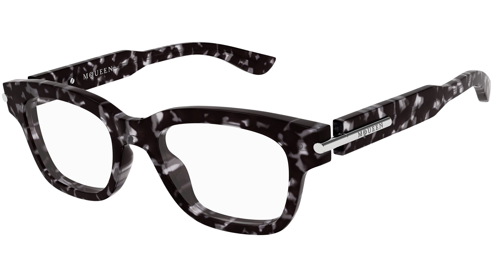 Alexander McQueen AM0497O Grey Dark Havana Rectangular Glasses