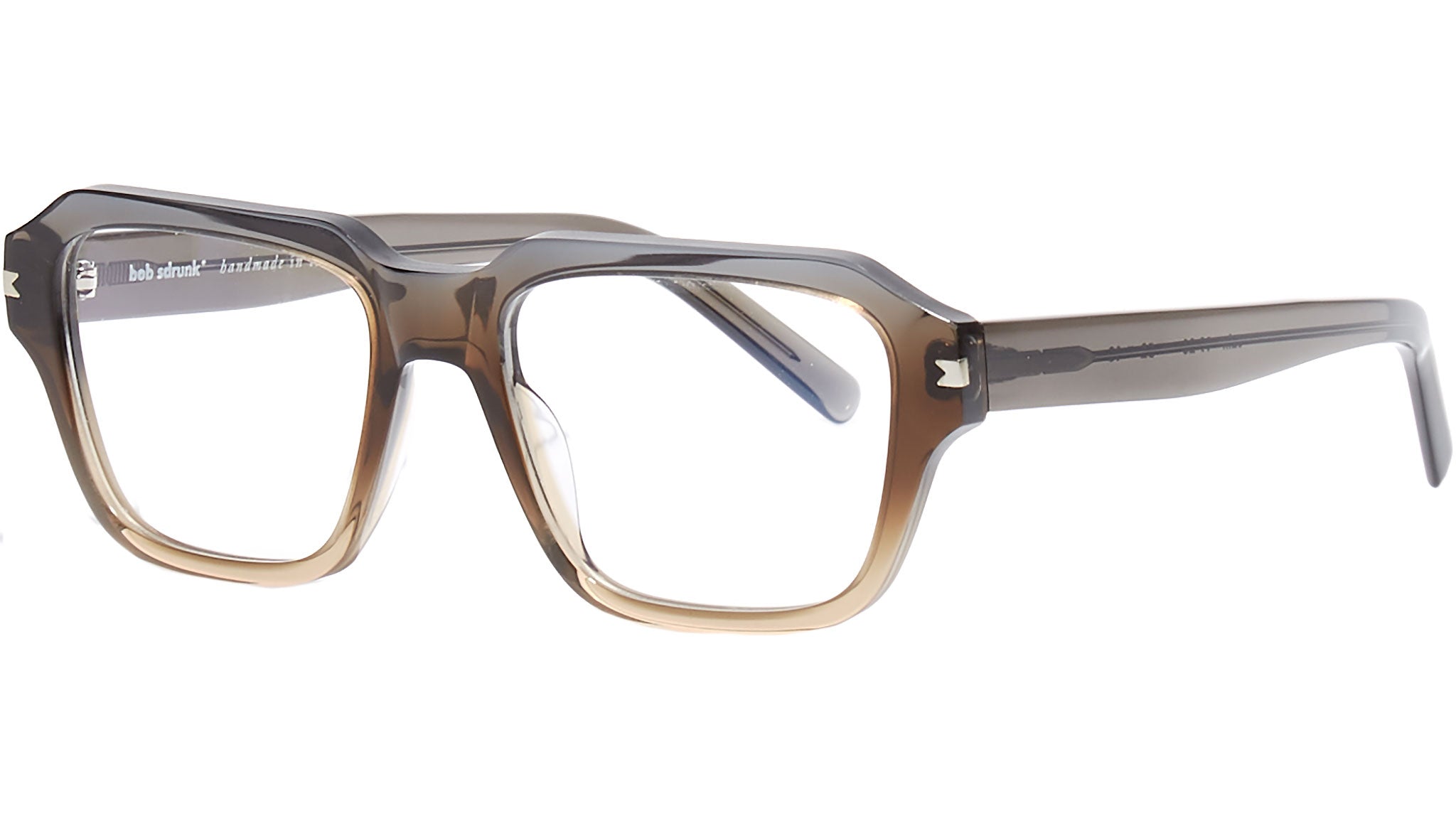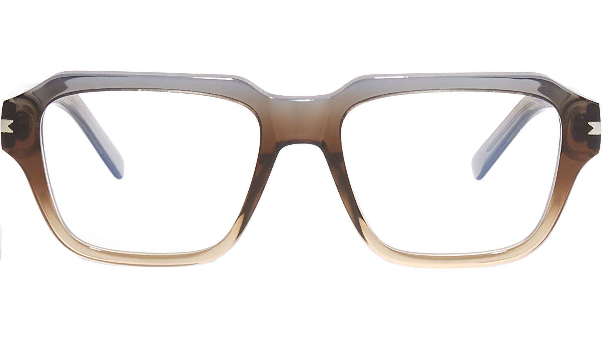 Acetate frame in crystal grey-champagne with antiglare filters.