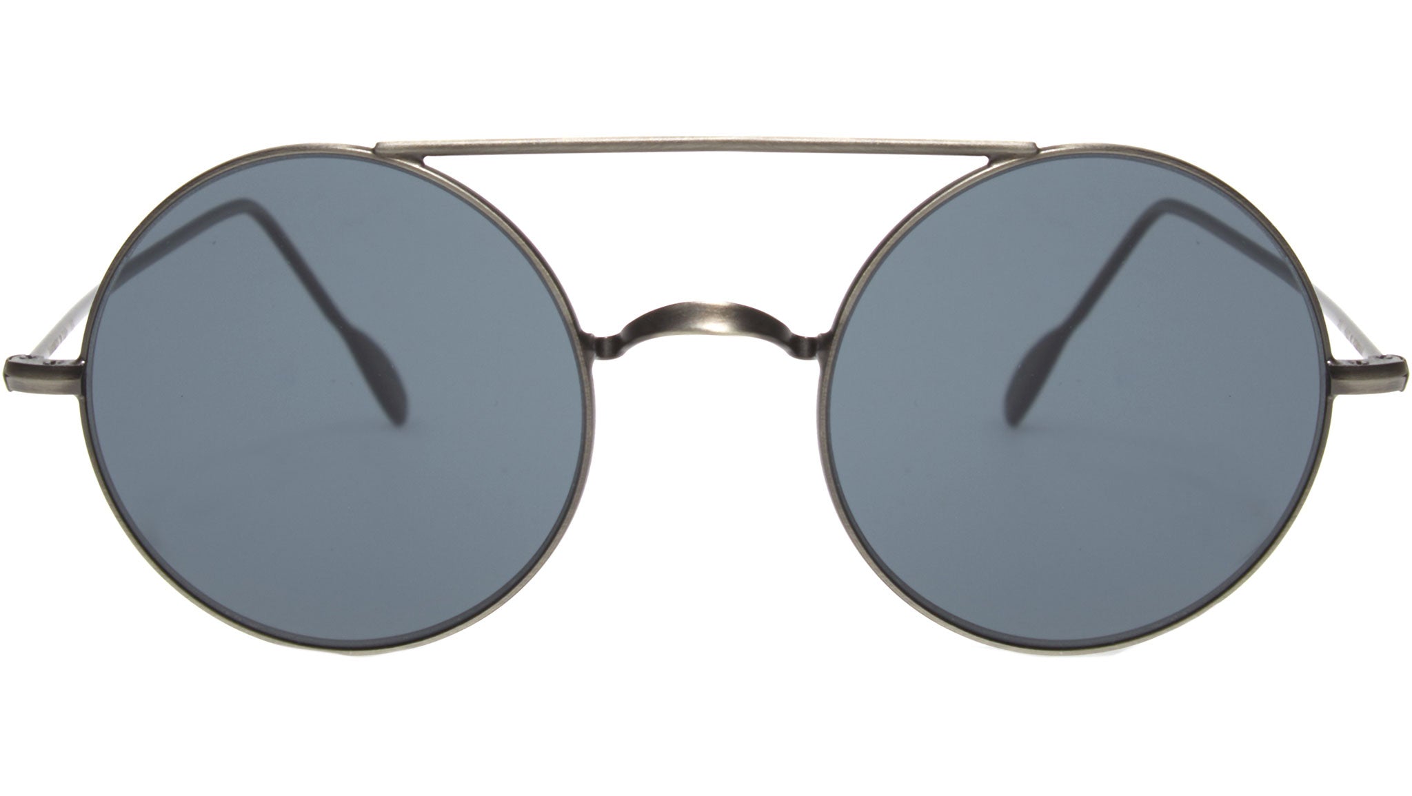 Metallic frame in silver with grey solid lenses.