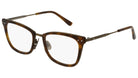 Occhiali da vista Bottega Veneta modello 0065O 002 featuring shiny medium havana and bronze front frame and bronze temple.