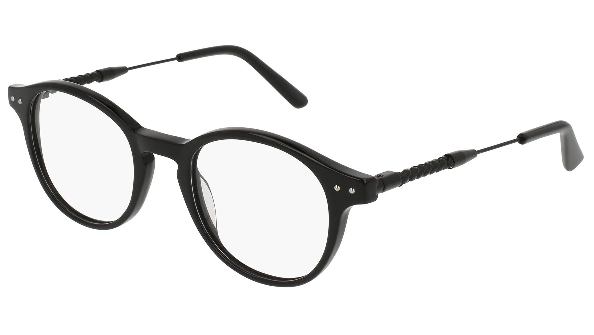 Occhiali da vista Bottega Veneta modello 0109O 001 featuring shiny black front frame and black temple.