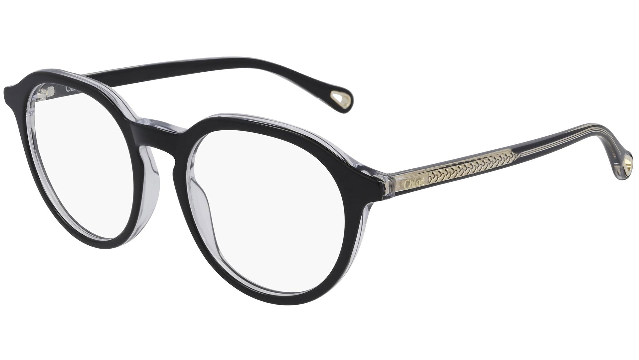 Occhiali da vista Chloé modello CH0012O 003, variante colore doppio strato nero lucido e cristallo con astine color nero. Scopri la nuova collezione eyewear donna Chloé Primavera Estate 2021, che include una gamma completa di montature da vista. La Maison parigina è riconosciuta per il suo fascino naturale che bilancia il savoir-faire dei coutourier di alta gamma con un'attitudine giovanile.
