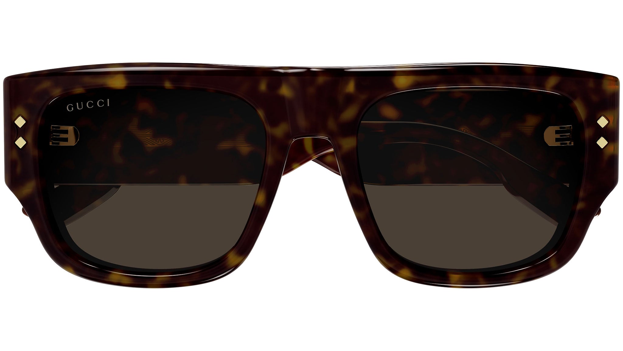 Occhiali da sole linea Gucci Logo modello GG1262S variante colore 002 tartaruga scuro lucido con lenti color tartaruga.