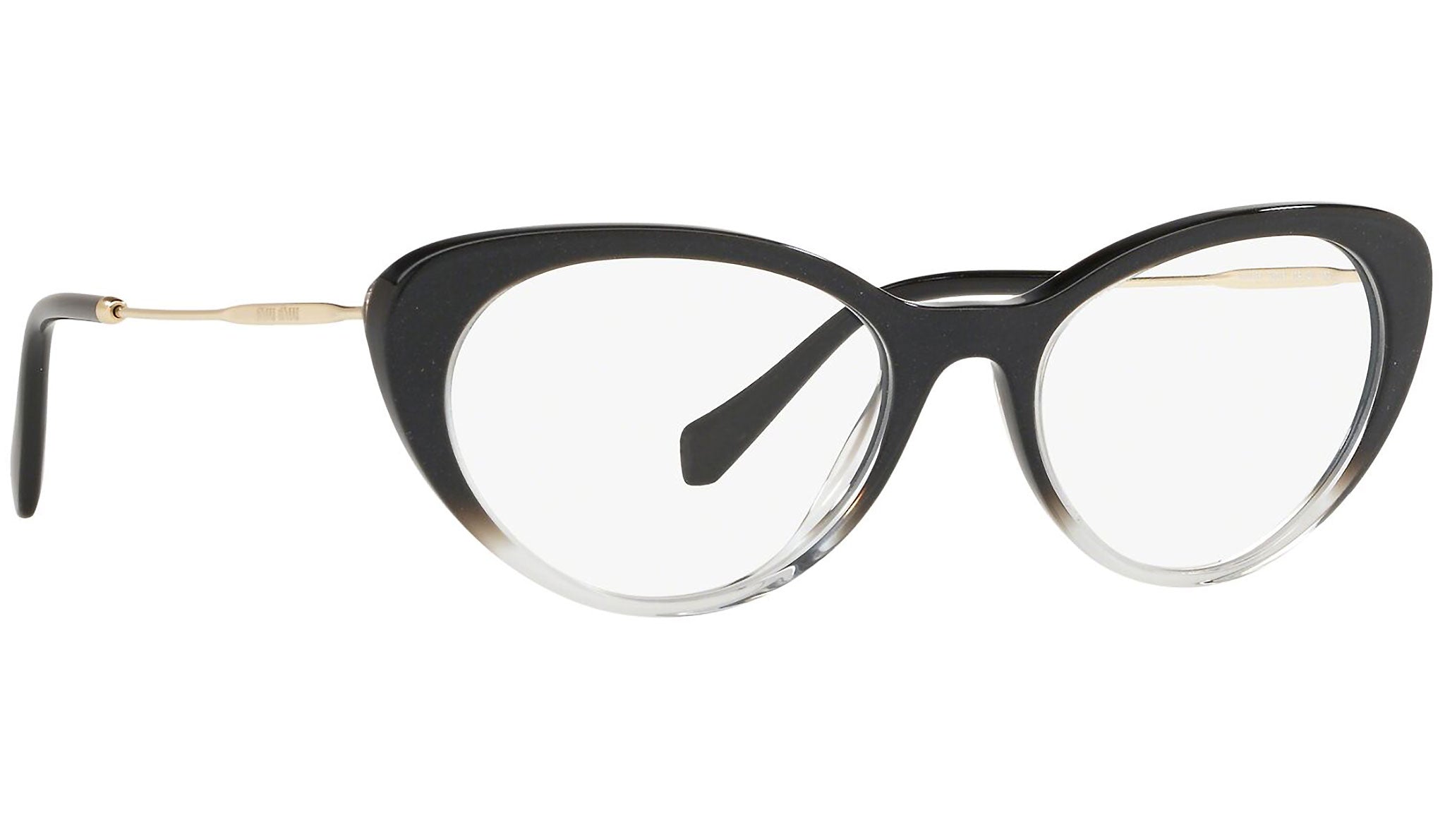 Occhiali da vista Miu Miu modello MU 05RV variante colore 1141O1 nero sfumato glitterato. Miu Miu offre creazioni uniche, in cui la costante ricerca stilistica si combina perfettamente con la maestria artigianale della lavorazione. Le silhouette femminili e sinuose delle montature sono espressione di una ricchezza dei dettagli che rispecchia pienamente i codici stilistici e l’indiscusso talento del brand nell’unire il design non convenzionale ad un romanticismo dai rimandi retrò.