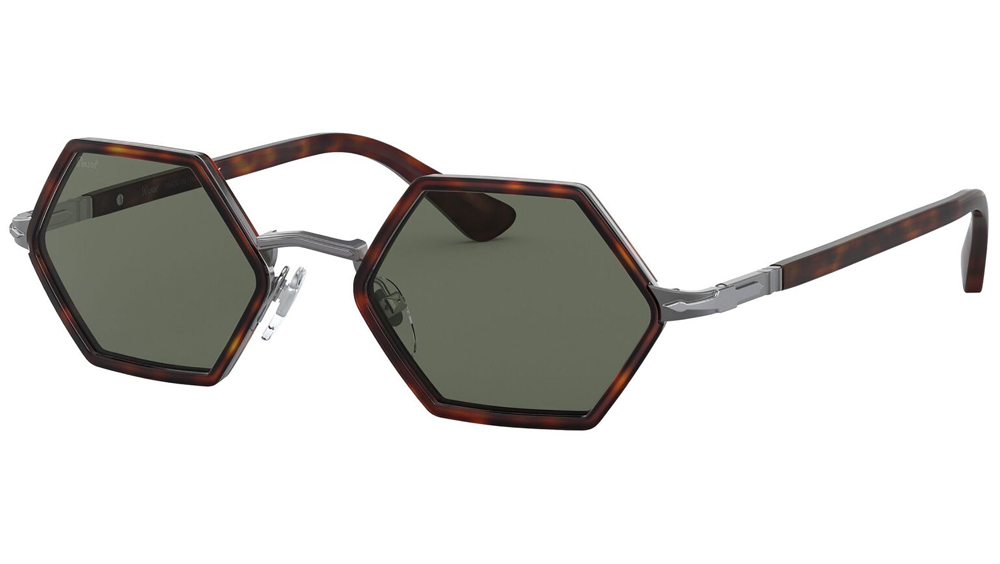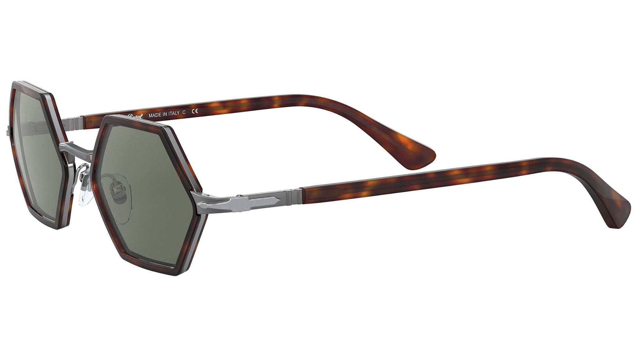 "Un modello dalla forma esagonale che attira l'attenzione per un tocco di ironia a un design Persol dei più moderni. Con la montatura in metallo dall'audace gusto contemporaneo e i cerchi in acetato, questo modello presenta un inedito ponte a V rovesciata e aste sottili dai terminali allungati. Per finire, la vestibilità è sempre perfetta grazie alle aste Flex Arrow con logo Persol". Dalla soluzione standard alle polarizzate, la selezione di lenti da sole in cristallo rappresenta qualità ed eccellenza. Ogni prodotto è realizzato nei più preziosi materiali ottici e garantisce la massima protezione e chiarezza visiva. L'acetato realizzato dal cotone e pigmenti crea variazioni che caratterizzano esclusivamente gli occhiali da sole Persol, rendendo unica ogni montatura. Realizzati a mano con materiali di prima qualità, tutti gli occhiali sono un’opera d’arte naturale.