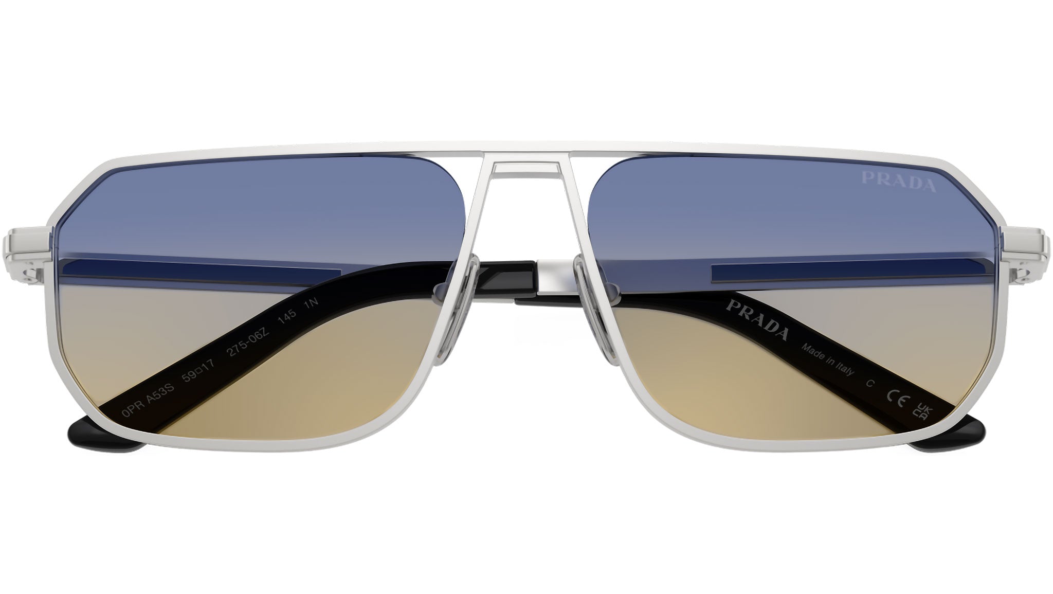 Prada PR A53S 27506Z Occhiali da Sole D-Frame Argento Opaco