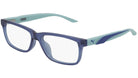 Occhiali da vista Puma Junior modello PJ0058O 002, variante colore blu elettrico trasparente lucido con astine color verde. Progettati per adattarsi a chi non sta mai fermo, agli sportivi, a tutti coloro che cercano uno stile di vita dinamico: Puma Eyewear è per gli impavidi, gli audaci e gli attivi, per coloro che vedono oltre le tendenze e sfidano le convenzioni, guardando sempre avanti.